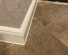 Особенности монтажа: для плинтуса Дёллькен из ХДФ существует возможность оформить наружный угол без разрыва облицовочной пленки. Для этого вам понадобится гильотина, с помощью которой оформляется внутренний угол, наружный, стык и заглушки для плинтуса. Далее Дёллькен просто крепится к стене на жидкие гвозди или термопистолет. Гильотину можно взять под залог в нашем розничном магазине.