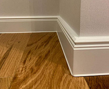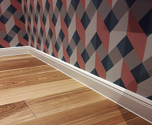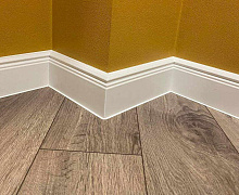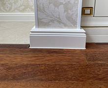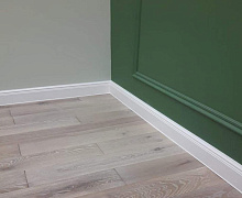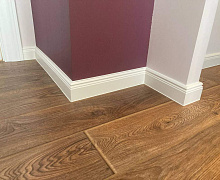 Немецкий плинтус Дёллькен из ХДФ на древесноволокнистой основе перекроет зазор между стеной и полом до 18мм.