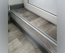 Способ монтажа: алюминиевый порожек без вставки крепится в проем между двумя напольными покрытиями или на ступени при помощи саморезов (идут в комплекте). Затем прорезиненную ПВХ вставку нужно нагреть строительным или обычным феном, либо подержать в горячей воде, чтобы материал стал мягче и легче вошел в паз профиля.